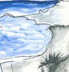 Marsh Inlet Watercolor Beach Printable, Seashore Digital Art Print, Seaside Downloadable Wall Art, Blue Ocean Painting Download, Beach Grasses Painting