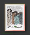 Watercolor Rain Painting, Rainy Day Paintings With Umbrellas, Rainy Day Downtown Painting, Pictures Of Rain And Umbrellas, Rainy City Painting, Rainy Day Painting With Umbrella Images, Rain In The City Picture, Rainy Rainy Day I Painting