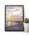 Digital Art Print, Printable Wall Art, Watercolor Sunset Printable, Beach In The Evening Downloadable Artwork, Orange Yellow Black Purple