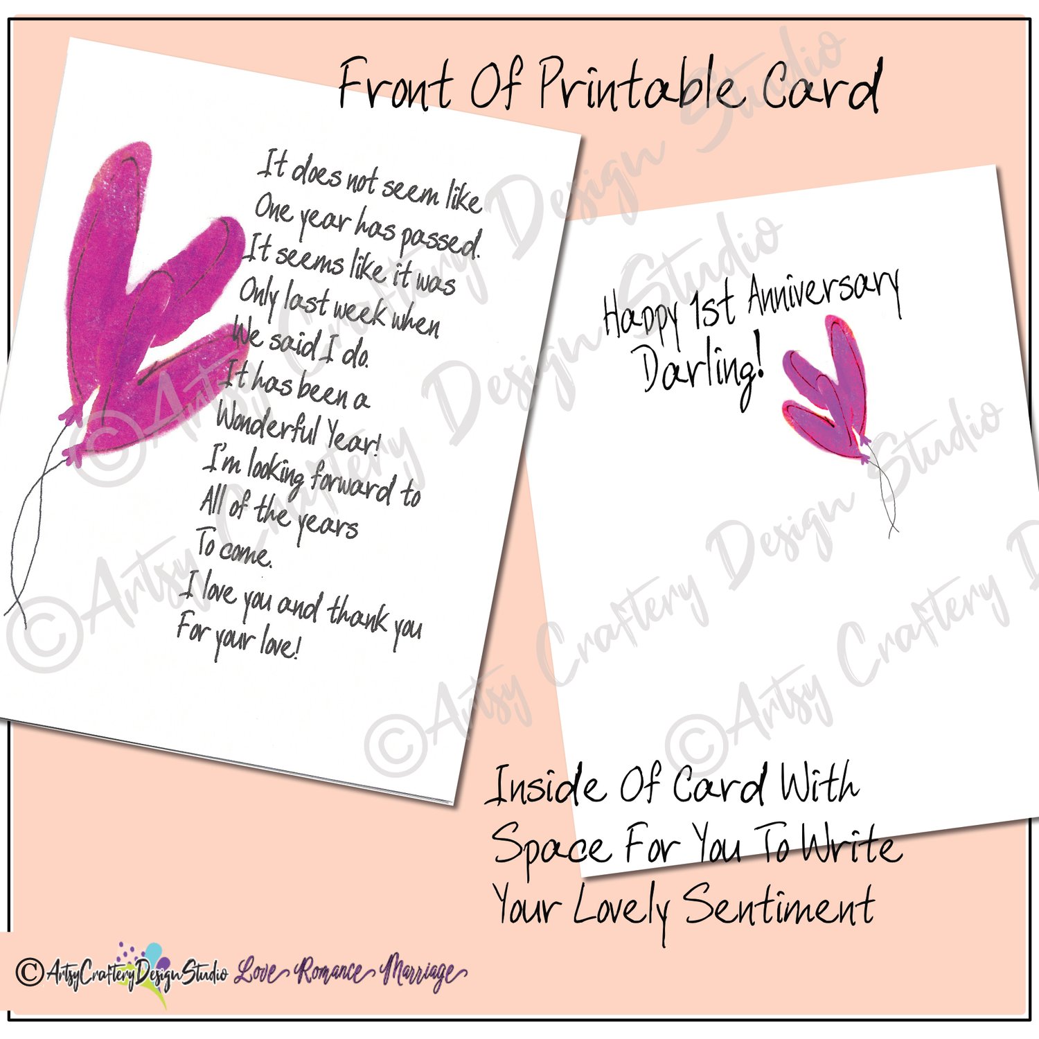 1st Anniversary Balloon Hearts Card Printable